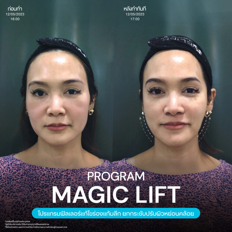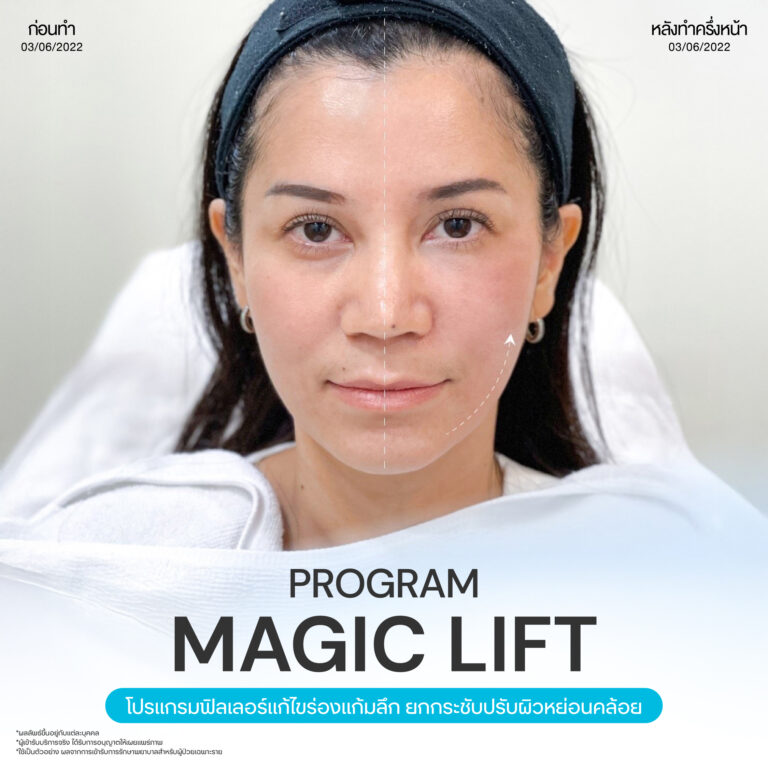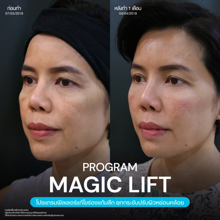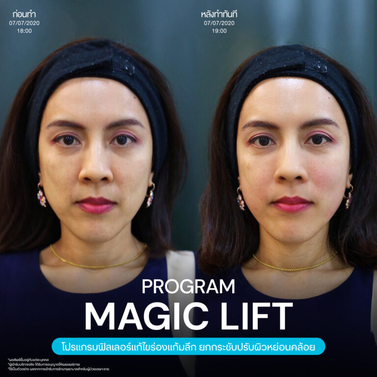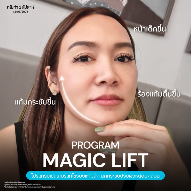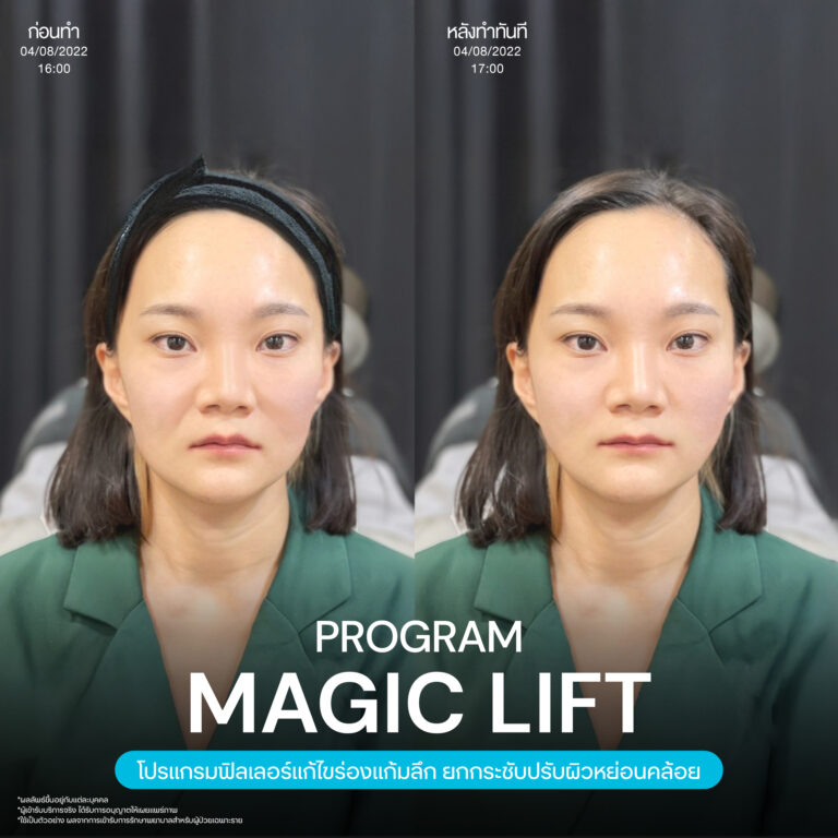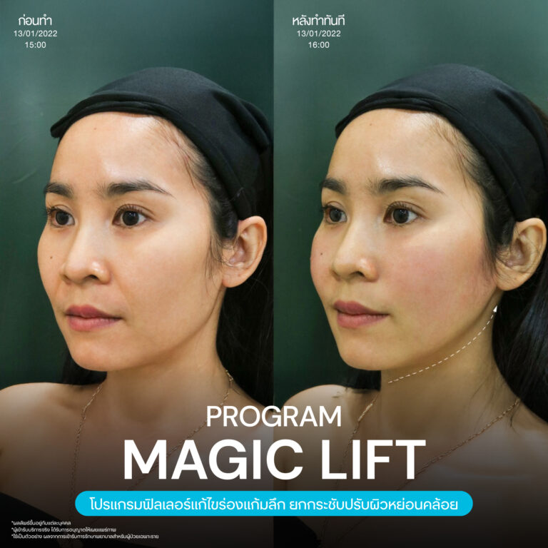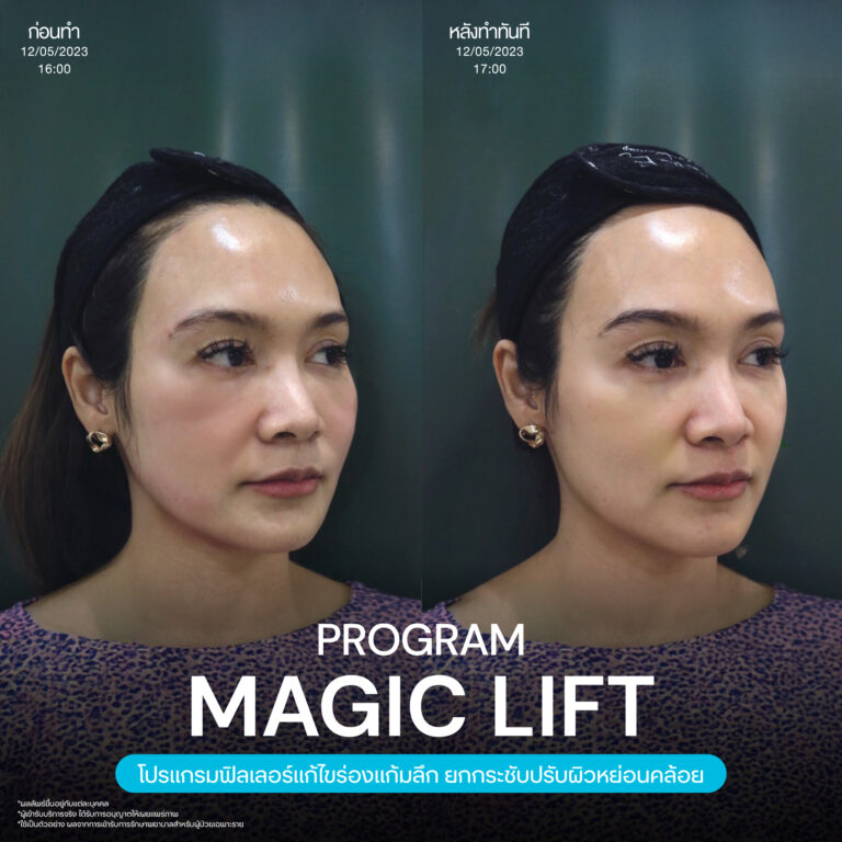 Magic Lift โปรแกรมการฉีด HA Filler เพื่อแก้ไขปัญหาทรงแก้ม ร่องแก้ม ใบหน้าที่มีความหย่อนคล้อย ให้แลดูอ่อนเยาว์ โดยเฉพาะโครงหน้าของสาวเอเชียที่มีโหนกแก้มค่อนข้างสูงและกว้าง เมื่อถูกปรับด้วยโปรแกรมMagic Lift แล้วทำให้ใบหน้าได้สัดส่วนที่สวยงาม และด้วยการเลือกชนิดของโปรแกรม HA Filler ที่เฉพาะเจาะจง เฉพาะบุคคล ผสานกับเทคนิคการฉีดของคุณหมออู๋ ณัฐพล ทำให้ได้ผลลัพธ์ประทับใจ แก้ไขปัญหาลงลึกตามสาเหตุ และแลดูเป็นธรรมชาติ
