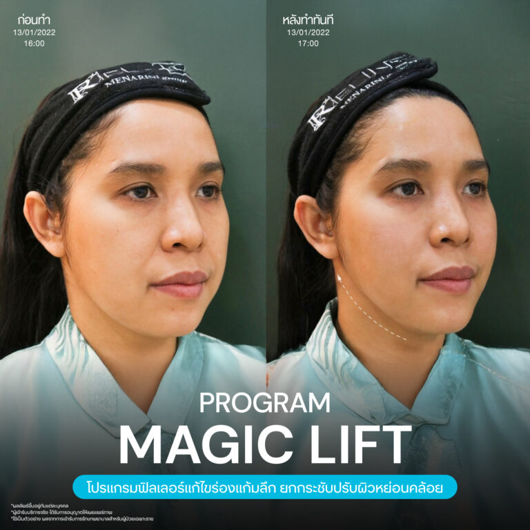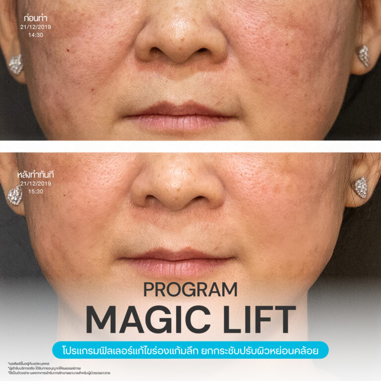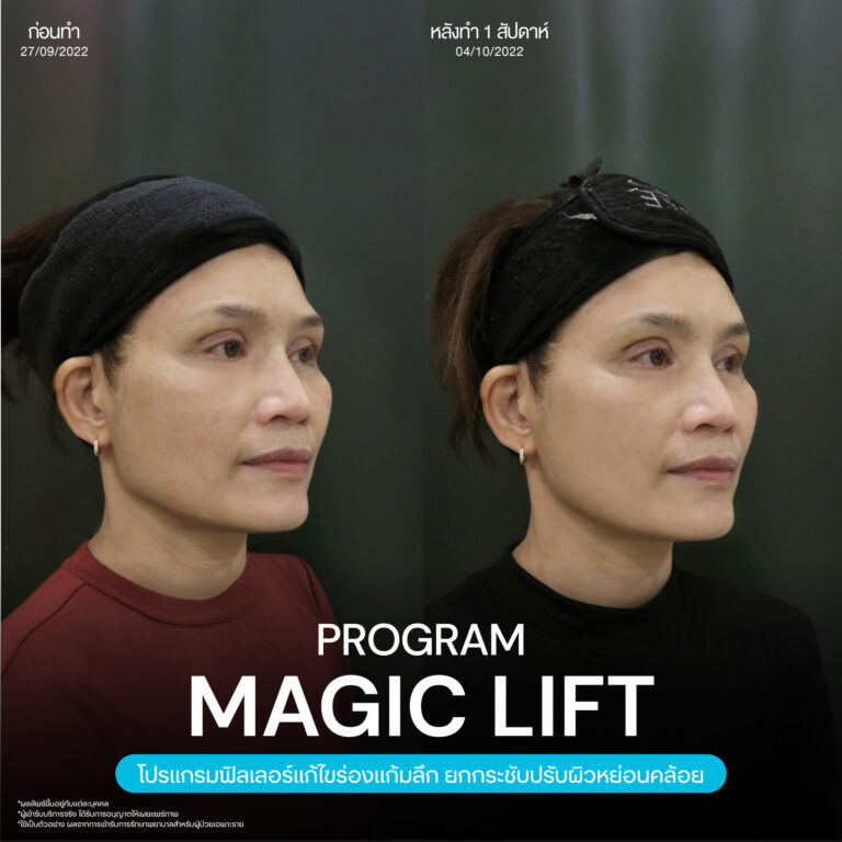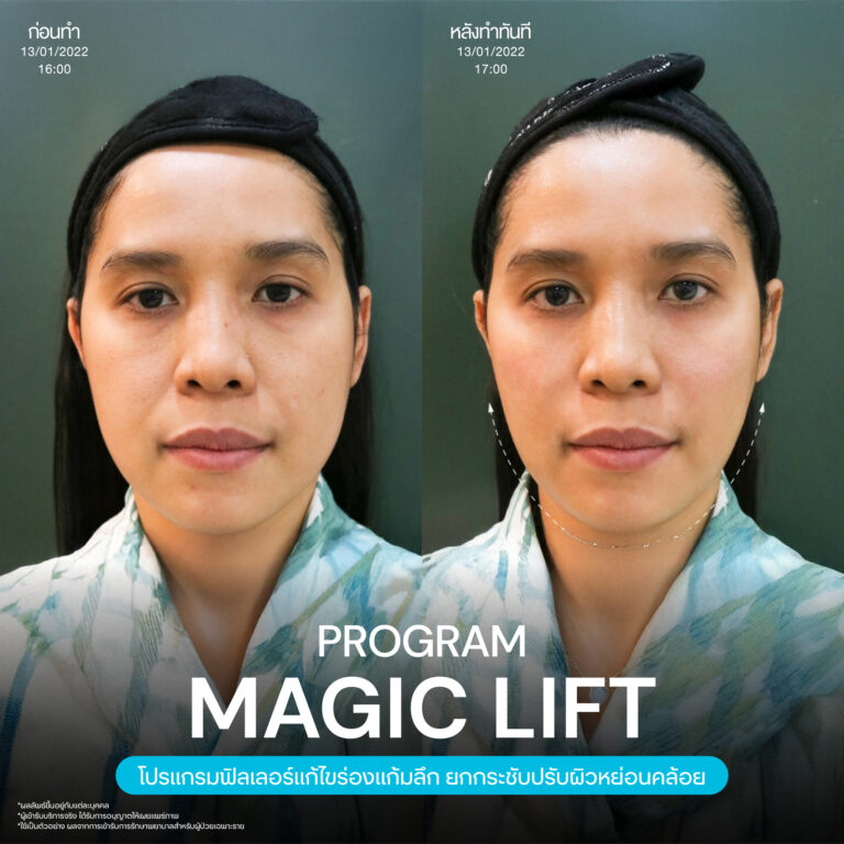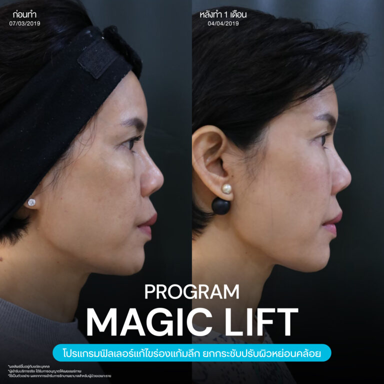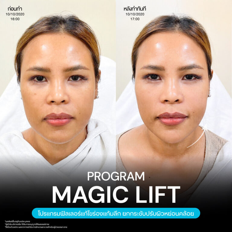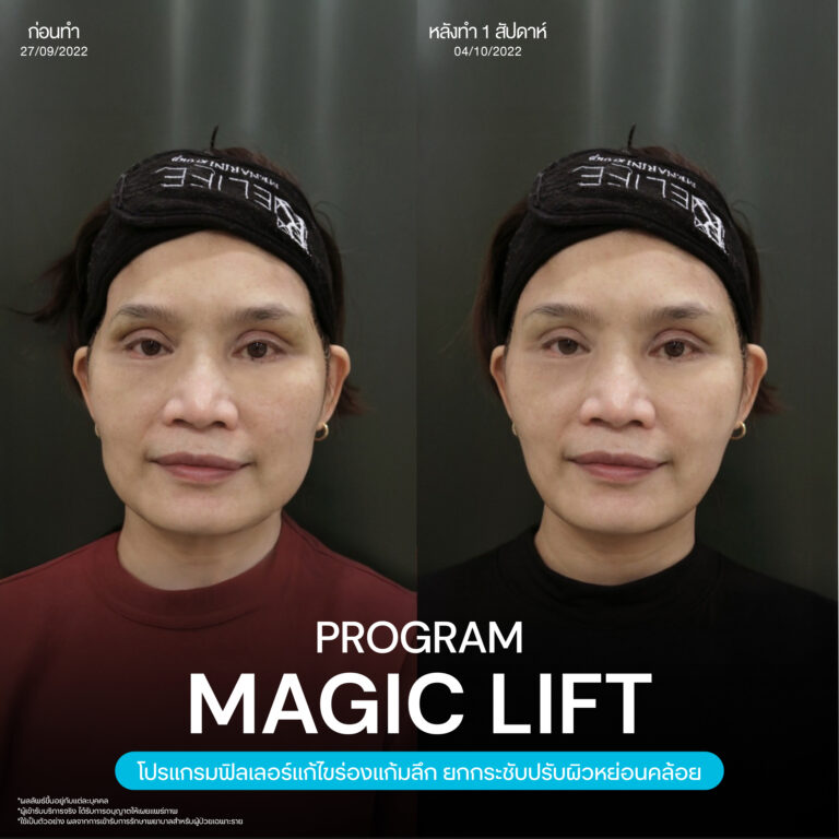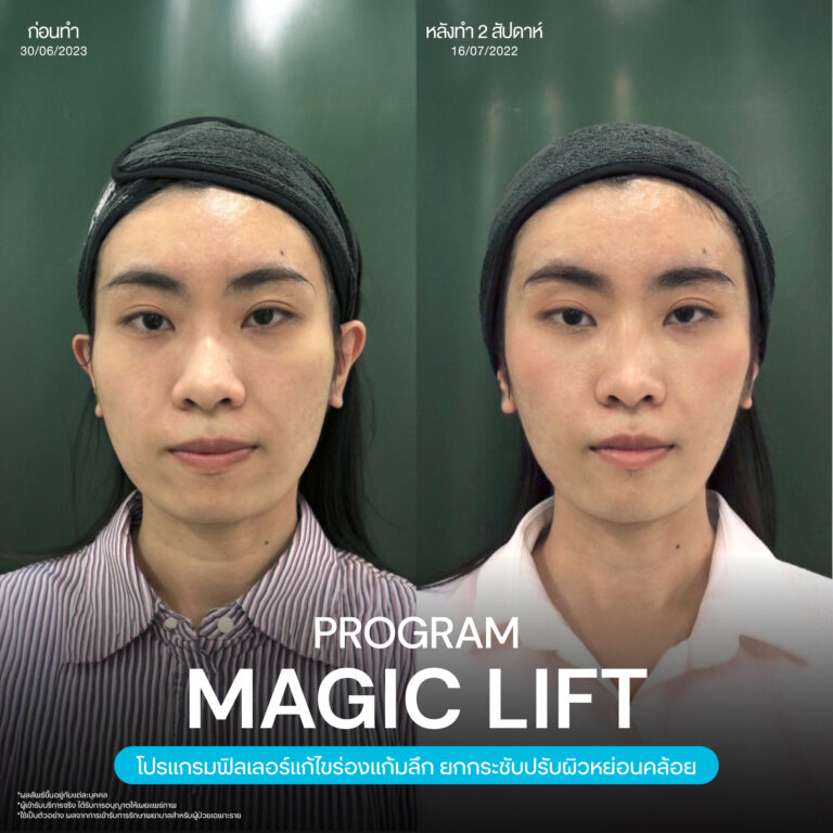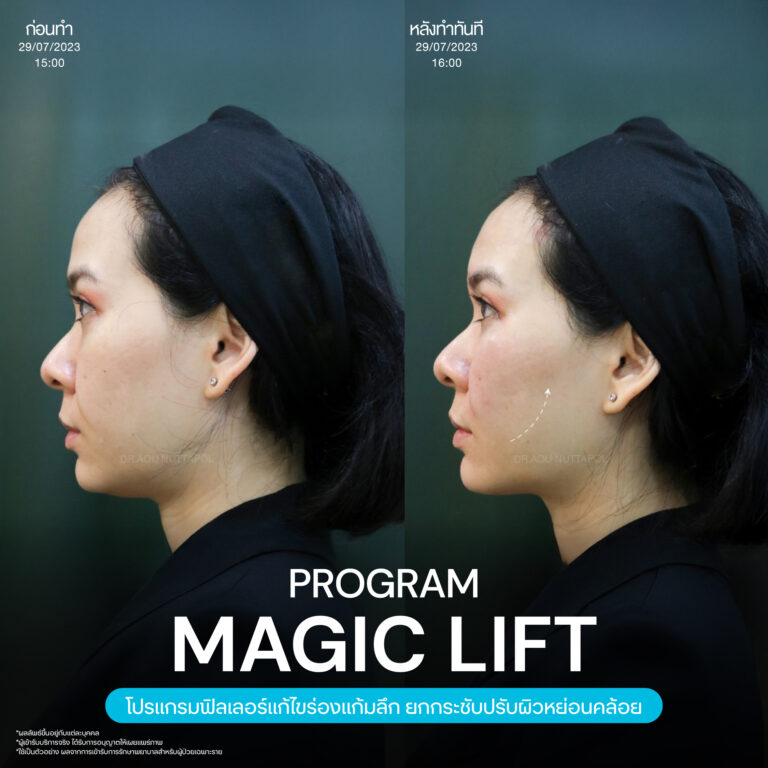 Magic Lift โปรแกรมการฉีด HA Filler เพื่อแก้ไขปัญหาทรงแก้ม ร่องแก้ม ใบหน้าที่มีความหย่อนคล้อย ให้แลดูอ่อนเยาว์ โดยเฉพาะโครงหน้าของสาวเอเชียที่มีโหนกแก้มค่อนข้างสูงและกว้าง เมื่อถูกปรับด้วยโปรแกรมMagic Lift แล้วทำให้ใบหน้าได้สัดส่วนที่สวยงาม และด้วยการเลือกชนิดของโปรแกรม HA Filler ที่เฉพาะเจาะจง เฉพาะบุคคล ผสานกับเทคนิคการฉีดของคุณหมออู๋ ณัฐพล ทำให้ได้ผลลัพธ์ประทับใจ แก้ไขปัญหาลงลึกตามสาเหตุ และแลดูเป็นธรรมชาติ