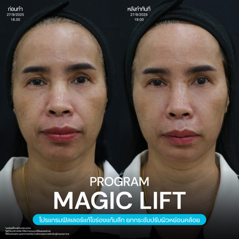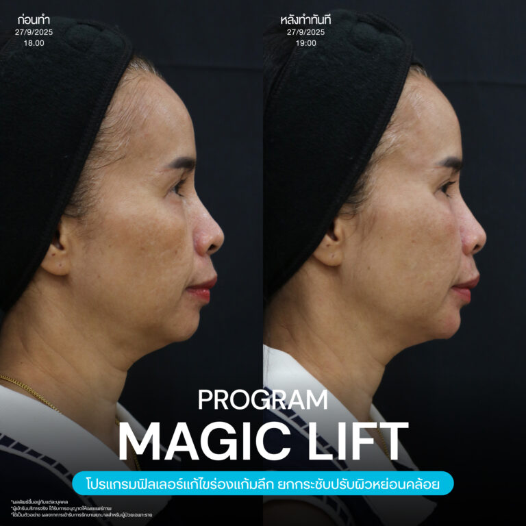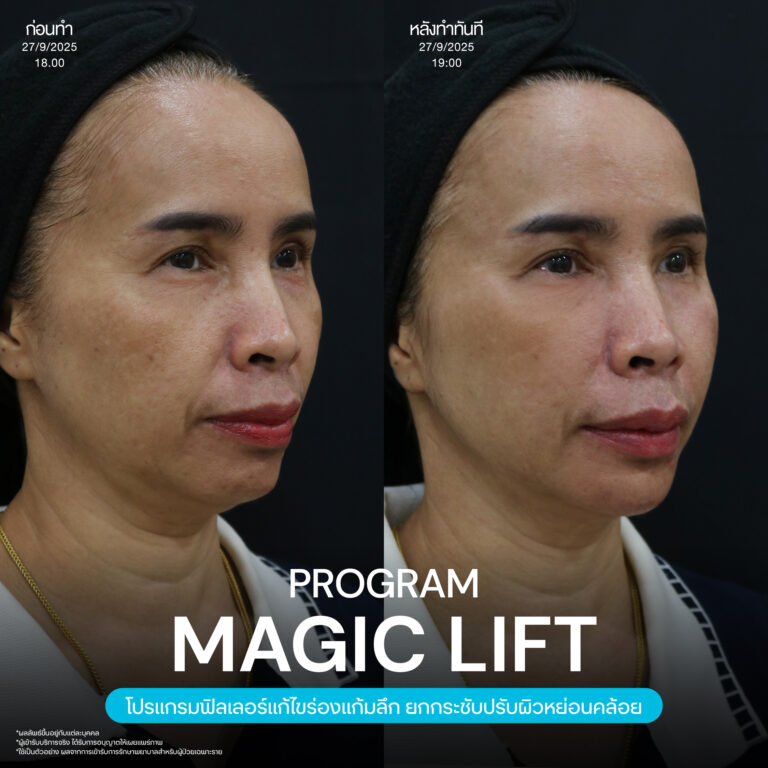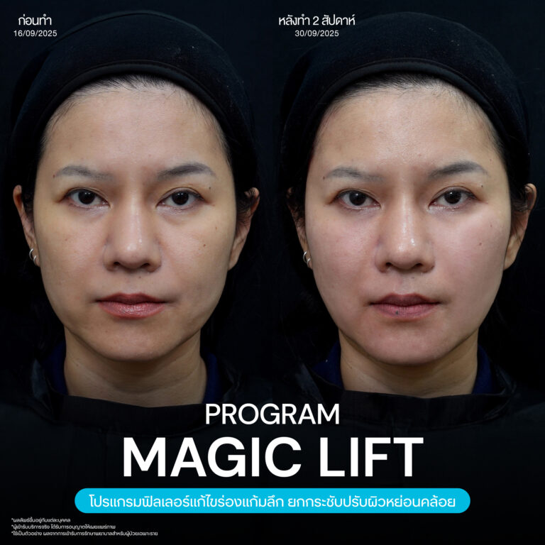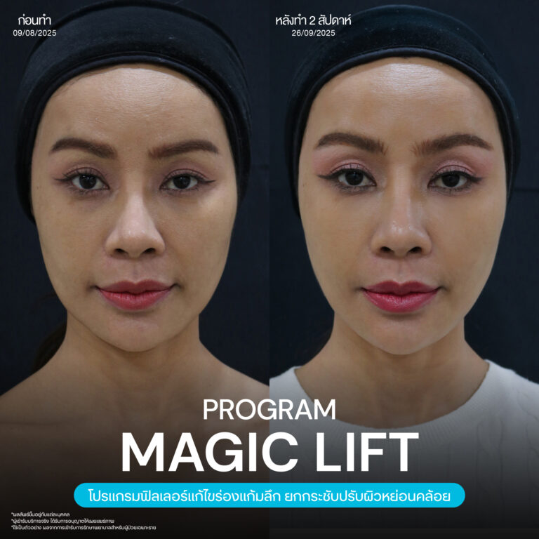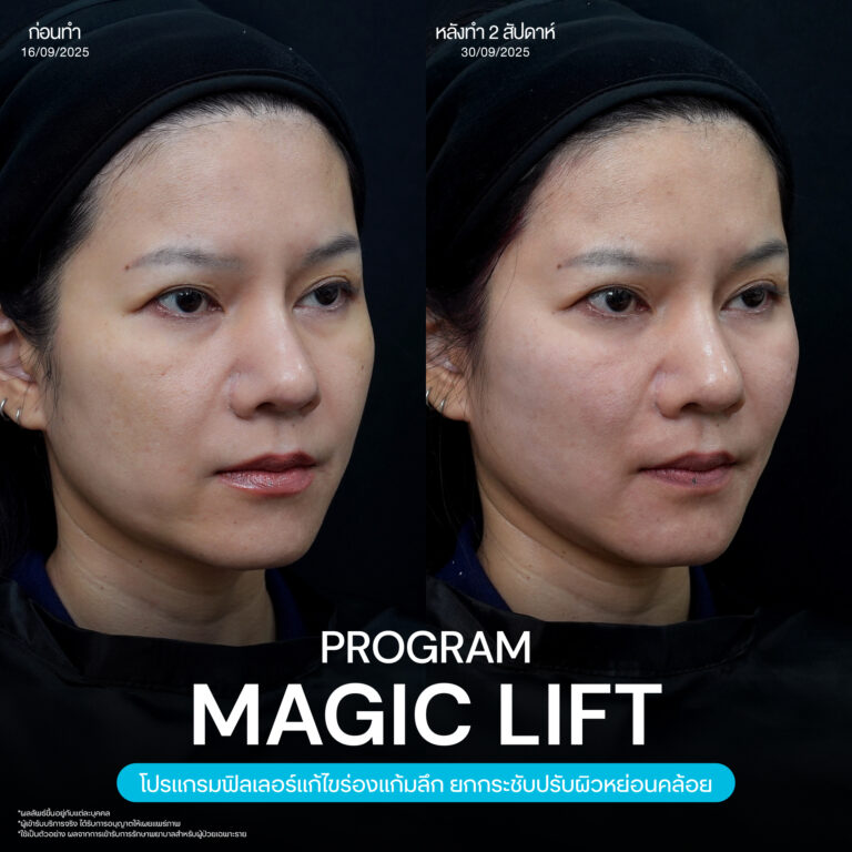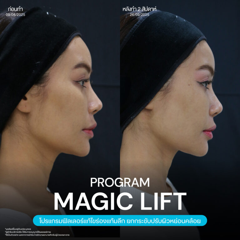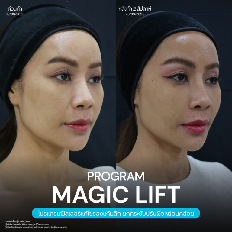 Magic Lift โปรแกรมการฉีด HA Filler เพื่อแก้ไขปัญหาทรงแก้ม ร่องแก้ม ใบหน้าที่มีความหย่อนคล้อย ให้แลดูอ่อนเยาว์ โดยเฉพาะโครงหน้าของสาวเอเชียที่มีโหนกแก้มค่อนข้างสูงและกว้าง เมื่อถูกปรับด้วยโปรแกรมMagic Lift แล้วทำให้ใบหน้าได้สัดส่วนที่สวยงาม และด้วยการเลือกชนิดของโปรแกรม HA Filler ที่เฉพาะเจาะจง เฉพาะบุคคล ผสานกับเทคนิคการฉีดของคุณหมออู๋ ณัฐพล ทำให้ได้ผลลัพธ์ประทับใจ แก้ไขปัญหาลงลึกตามสาเหตุ และแลดูเป็นธรรมชาติ